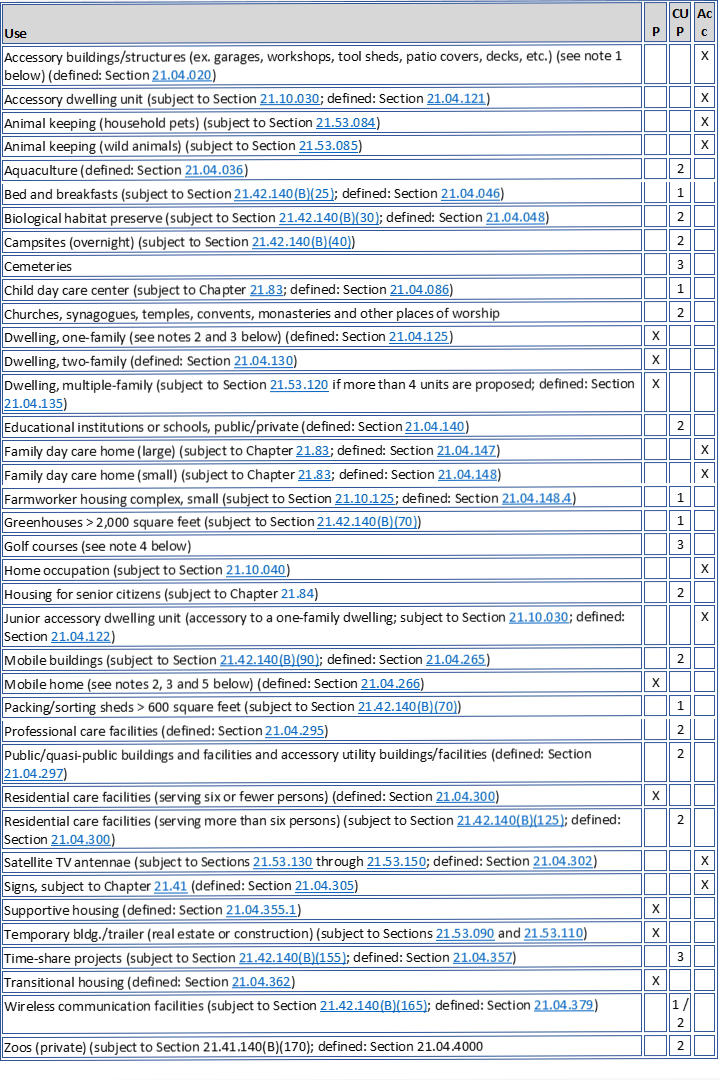 Development Information Today: Villaggio’s team is revisiting both design and alternative land uses. Private Family Estate home site(s) Residential - detached, condo, townhome, duplex, up-down hill Senior housing - from independent through assisted living Beneficiaries of the Trust are exploring 6 up/down hill fourplex units with ADUs (forty-eight units) within California’s Coastal zone, which allows short-term rentals. The goal is to double land value in increments at each entitlement step. ____________________________ History: Documented history, entitlements, environmental, geology, infrastructure, etc. is available on cloud drop box. Villaggio was part of the larger adjacent property settled by the Kelly family during California’s early history. Villaggio has been farmed since Kelly family’s arrival and since 1980s graded, farmed and maintained under permits and environmental reviews. A 5.64 acres infill site with access and utilities 1980 : Villaggio’s owner acquired the larger adjacent property, and in 1985 received unanimous approval by all agencies, when Villaggio was carving out to be independent of adjacent community and its HOA . During this process, Villaggio’s owner paid towards its and adjacent home’s infrastructure and personally dedicated vast adjacent acreages as natural habitat. For fully delivering such public benefit the government documented intent to respect Villaggio’s ability to recover Villaggio owner’s major investment. 1999: City required Villaggio’s owner to spend extensive additional funds as a co-applicant of a Coastal Commission and City application to amend (not rescind) 1985 Coastal Permit to replace the Master Plan with Zoning, to facilitate the new owner of the adjacent property. 2005 : Coastal Permit was revised and City staff, knowing that Villaggio’s owner was not ready to build, agreed to allow the forced Villaggio application participation and fees to toll until Villaggio was ready to move forward. Villaggio’s team has provided new City Staff, documentation of all agencies’ commitments that were granted in exchange for the benefits the public has fully received, including agencies writen assurances that site can utilize all the acerage outside the Hard Line for development, including a 20 foot setback within the Hard Line (See drop box for details). NOTE: Villaggio was carved out to be independent of the adjacent property and to capitalize on scarcity over time. The entitlement process was frozen short of a site-specific Final Map, comforted by existing entitlements providing flexibility for a future market. ___________________________ Property Information APN: 208-184-09 Gross Acres: 5.64 Zoning: RD-M-Q Land Use Designation: R-8 Building height: 35’ Infill Site with access and utilities to the boundary Property processed with agencies for decades Extensive Geological testing was performed, and Geotechnical model available Coastal Permit Authority has transfered to the City under the Local Coastal Plan Although processed for decades with adjacent property, Villaggio is not a part of adjacent HOA. ___________________________ Permitted RD-M-Q Uses (2024) In the table, below, subject to all applicable permitting and development requirements of the municipal code: "P" indicates use is permitted. (See note 6 below) "CUP" indicates use is permitted with approval of a conditional use permit. (See note 6 below) 1 = Minor Conditional Use Permit (Process One), pursuant to Chapter 21.42 of this title 2 = Conditional Use Permit (Process Two), pursuant to Chapter 21.42 of this title 3 = Conditional Use Permit (Process Three), pursuant to Chapter 21.42 of this title "Acc" indicates use is permitted as an accessory use